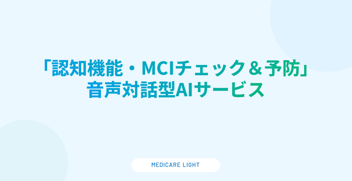当社株式会社 MEDICARE LIGHT (本社:東京都千代田区、代表者:代表取締役 柏木久史)はAIを活用する事で音声から認知機能状態・MCIリスクをチェックできる音声対話型AI×MCIスクリーニング事業を展開して参ります。下記詳細となります。 日本では高齢化の... -